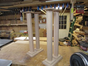 While those two were drying, I milled up two more columns. When the glue was dry enough, I pulled the clamps and used them on the second batch.