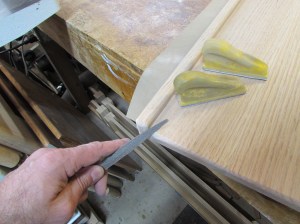 In the tight corner, by the book ledge, I used a rasp and some small sanding blocks to radius and blend them together.