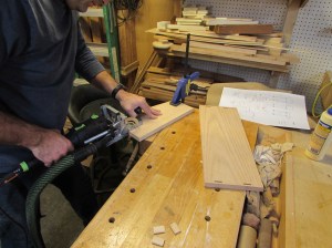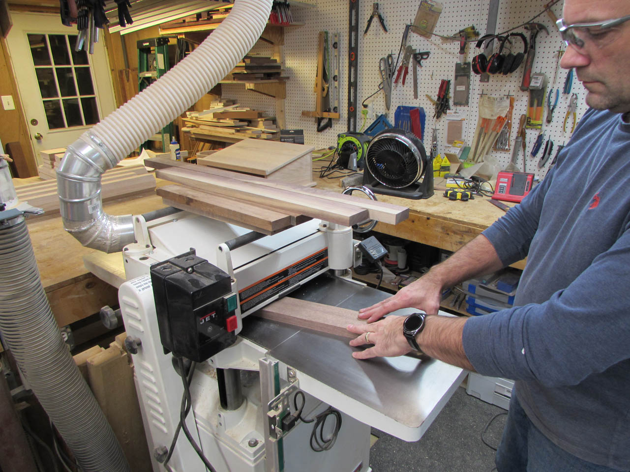 I jointed one face and one side of each board, then ran them all through the planer until they were exactly 3/4″ thick. I noticed that if I fed these short pieces through my planer at a slight angle they didn’t get any snipe on the ends. That is good to know, snipe usually leaves the first and last 3″ undersized and useless.