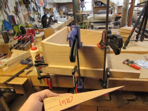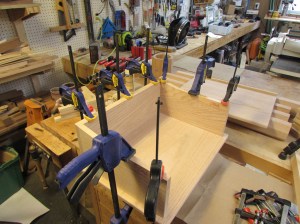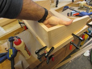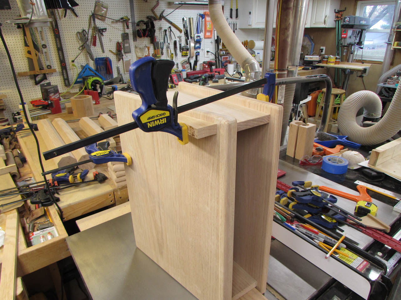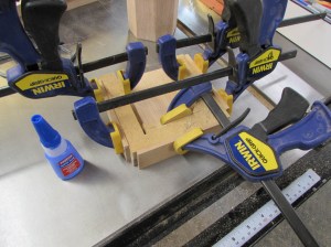 When the glue dried on the top section, I turned it on its side and clamped the top to it, in it’s future location.