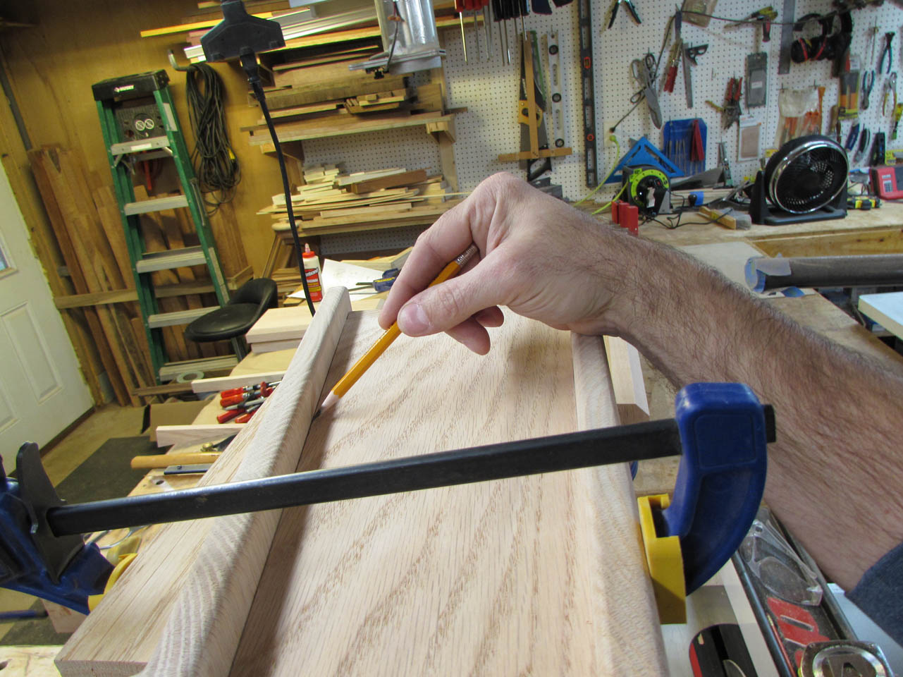 I use a pencil to mark the location of the sides to the bottom of the top piece.