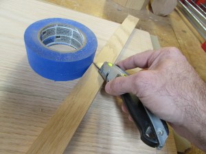 Then I cut some 3/4″ wide pieces of painter’s tape from a 2″ wide roll.