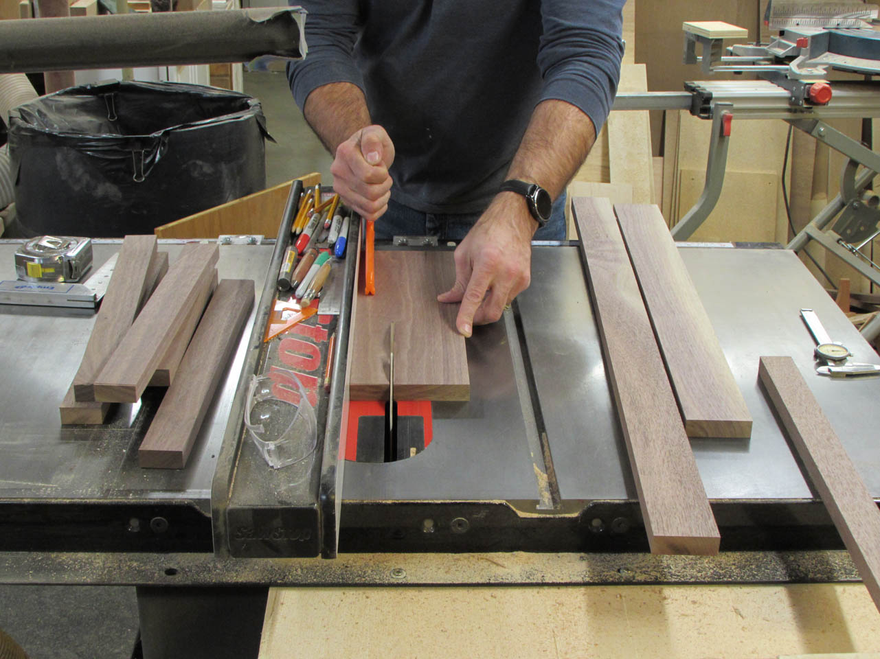 I picked through my walnut pile and pulled out all the small pieces that were over 3/4″ thick and had very little sap wood visible. This is a great use for these short off-cuts from other projects.