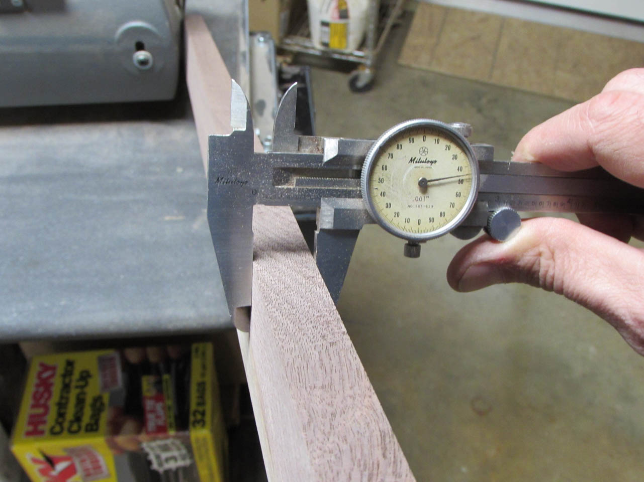I ran them each through my drum sander and removed about .005″ from each. That should leave me a slight bit of wiggle room.