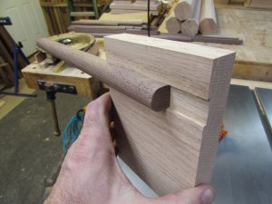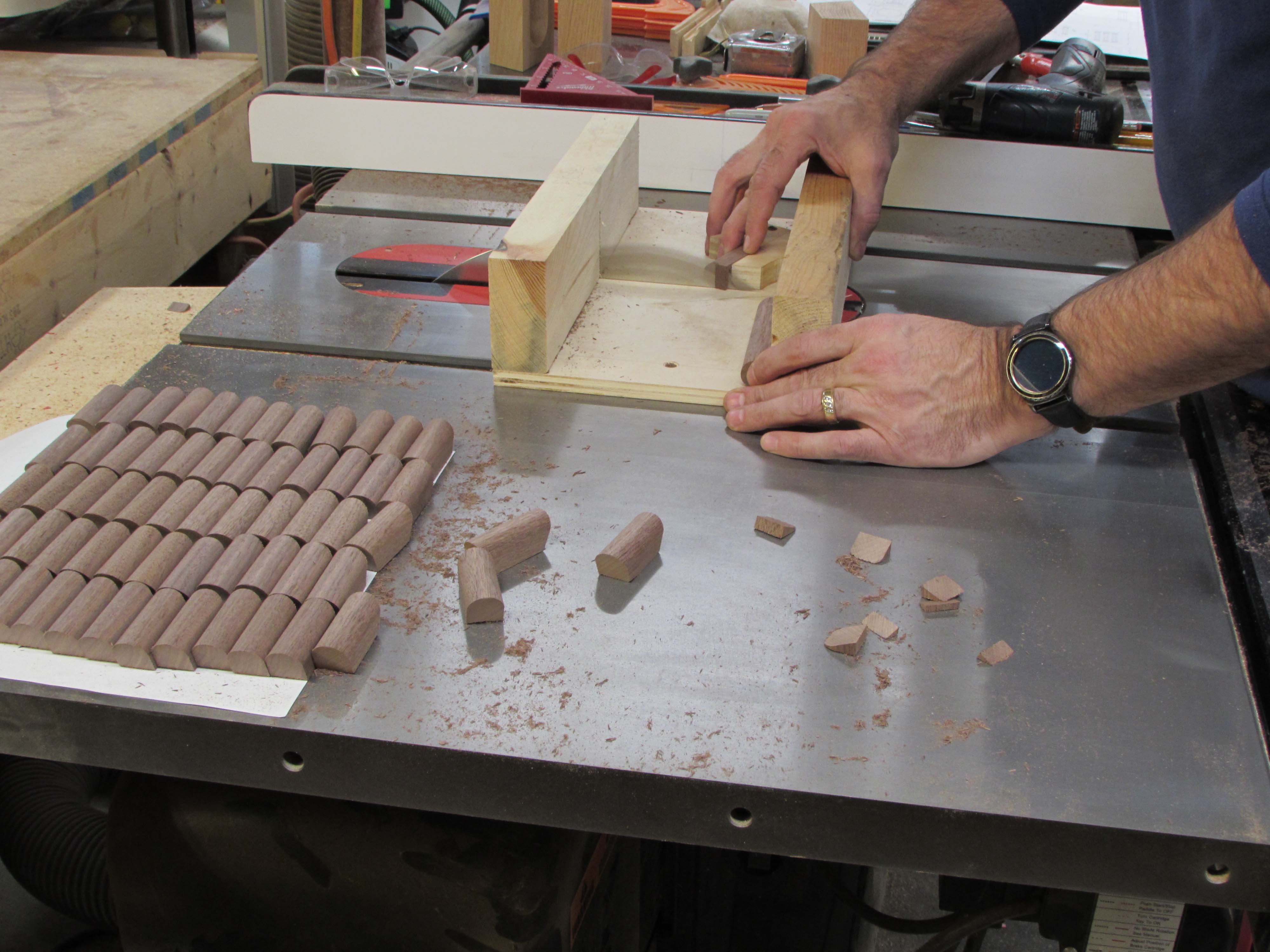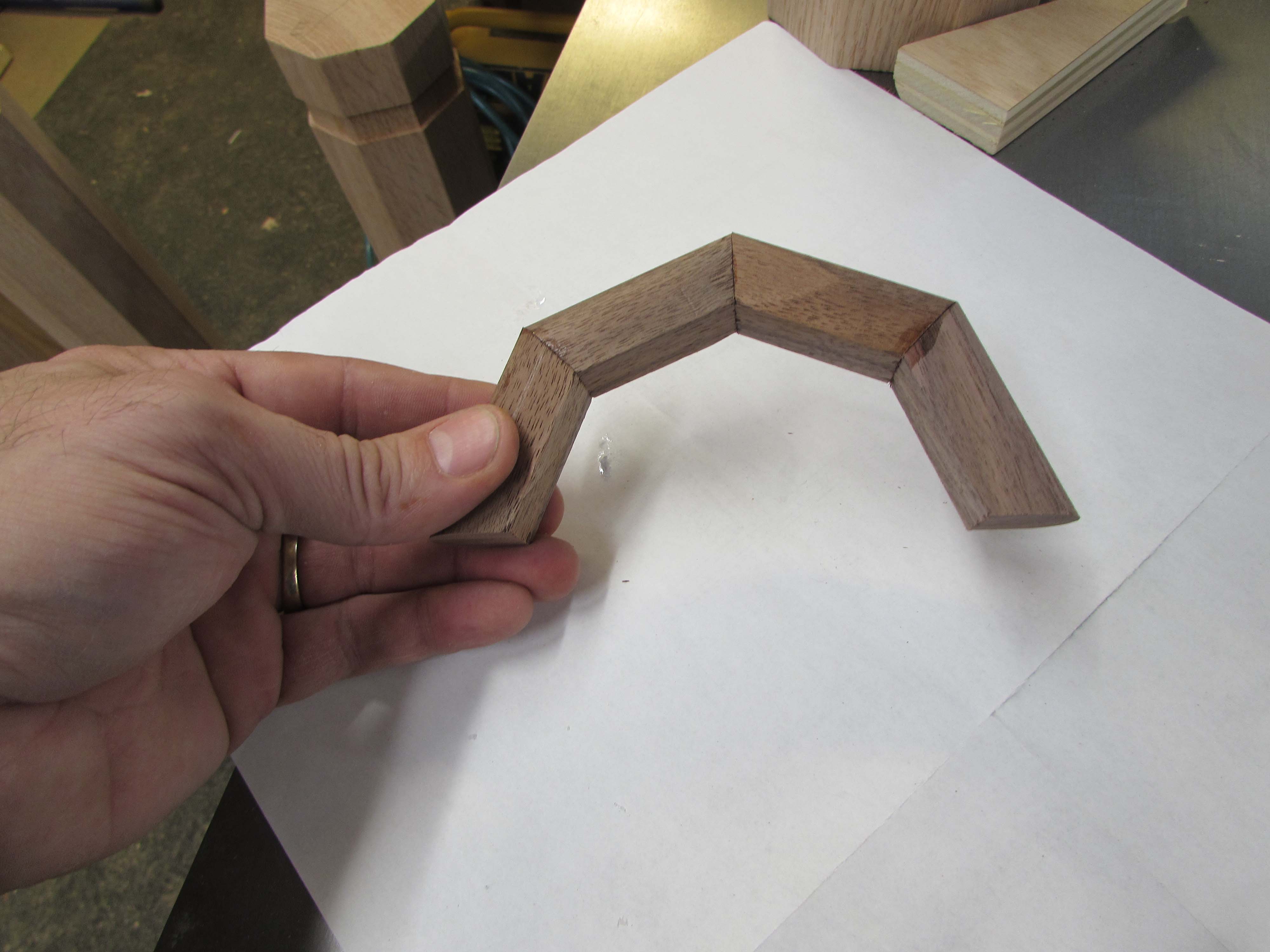 I quickly made a second half and see how well they went together. They were actually a perfect fit. It pays to take your time and make your jigs correctly. Now I can cut the 64 individual pieces of the trim and be sure that each one will be exactly the same.