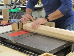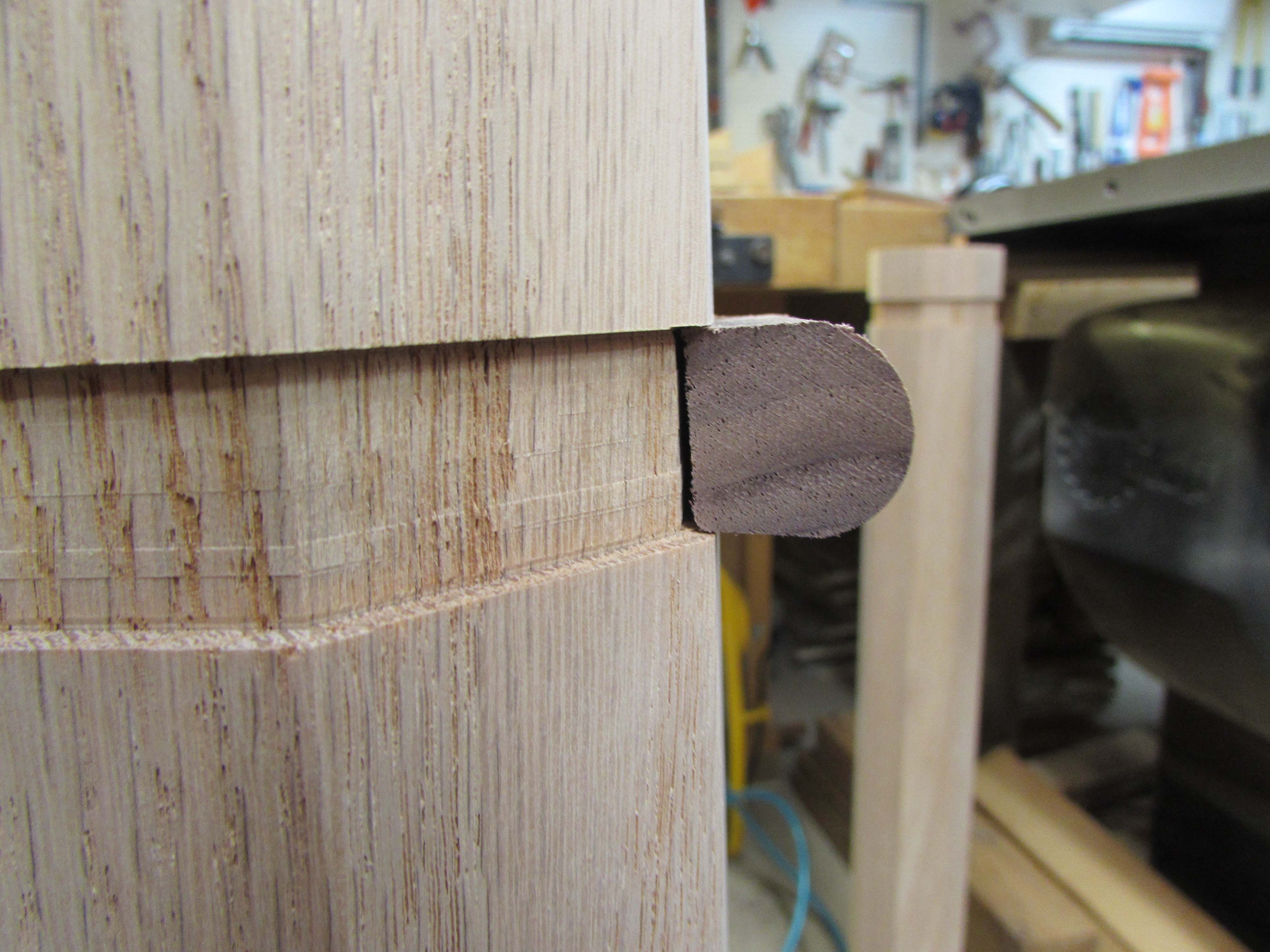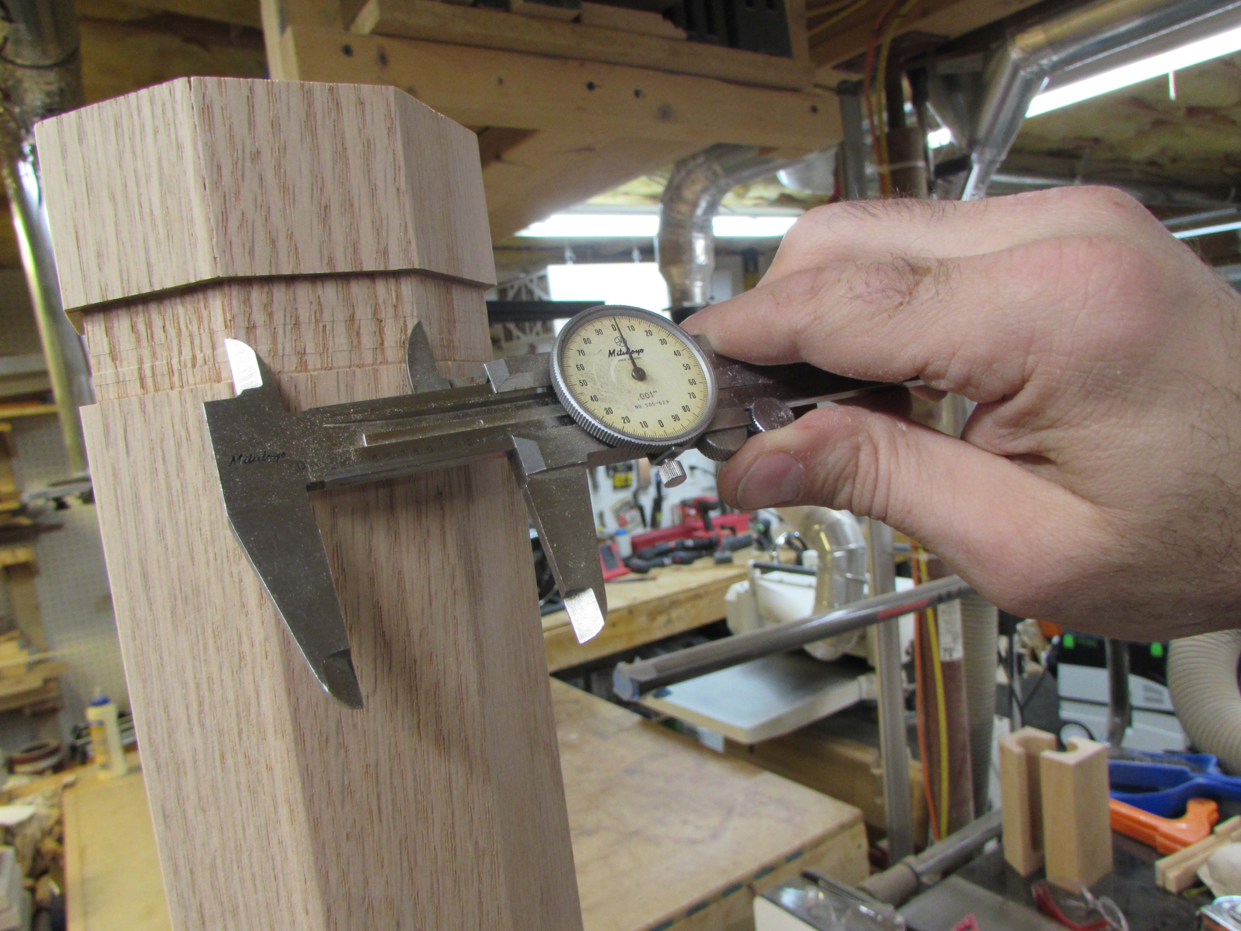 I applied three layers of tape to the stop block and ran the column through again. This widened the dado about .006″, just enough for the trim to now be a slip-fit, allowing for wood movement.