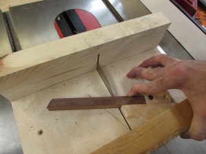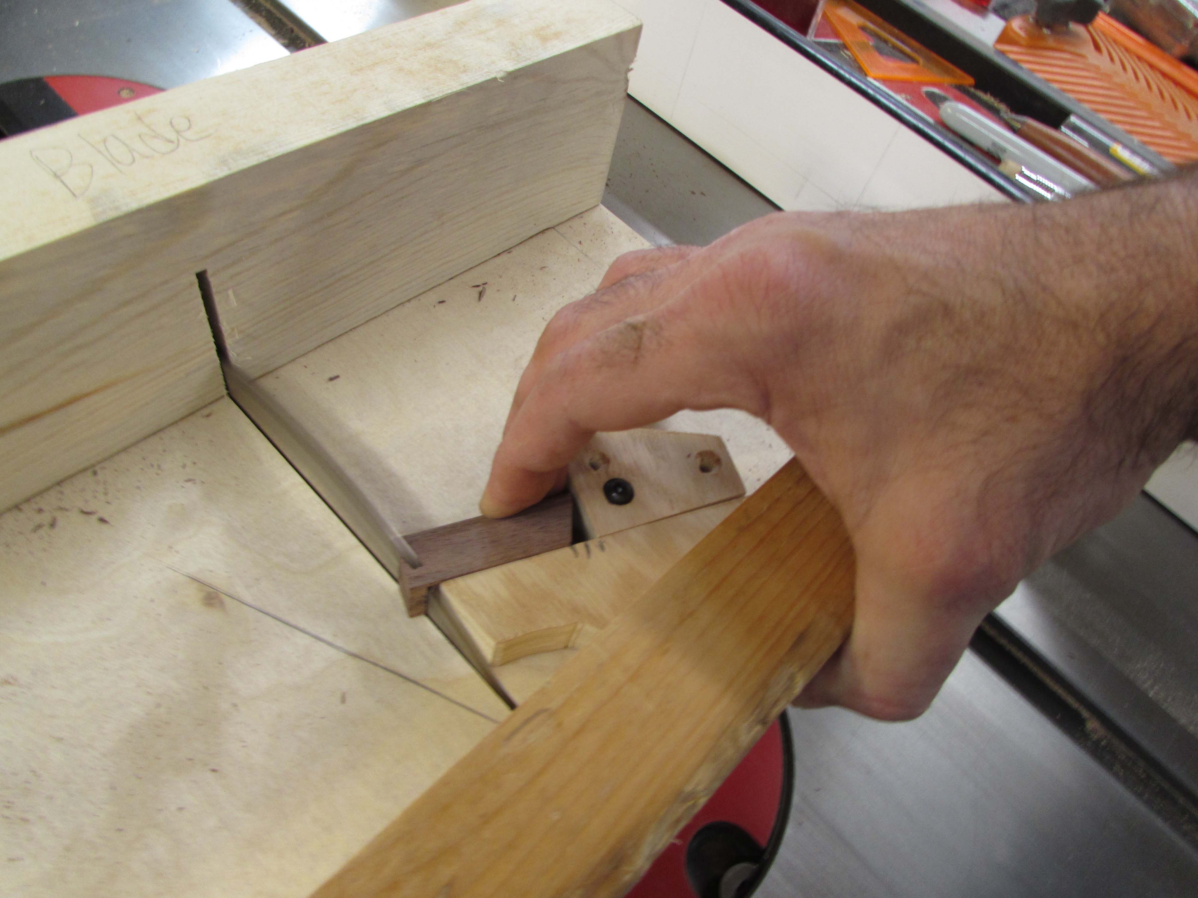 I made the blade set 3/4″ wide and raised it through the throat plate then did a test cut.