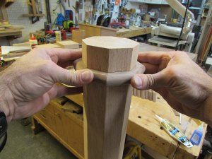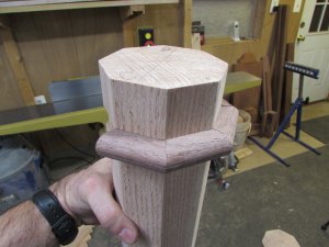 I want to recess all of the trim into a shallow dado on the top and bottom of the columns. My goal is to wrap the trim around the column while leaving a small gap between the trim and the oak column allowing room for the oak to expand or contract without damaging the trim.
