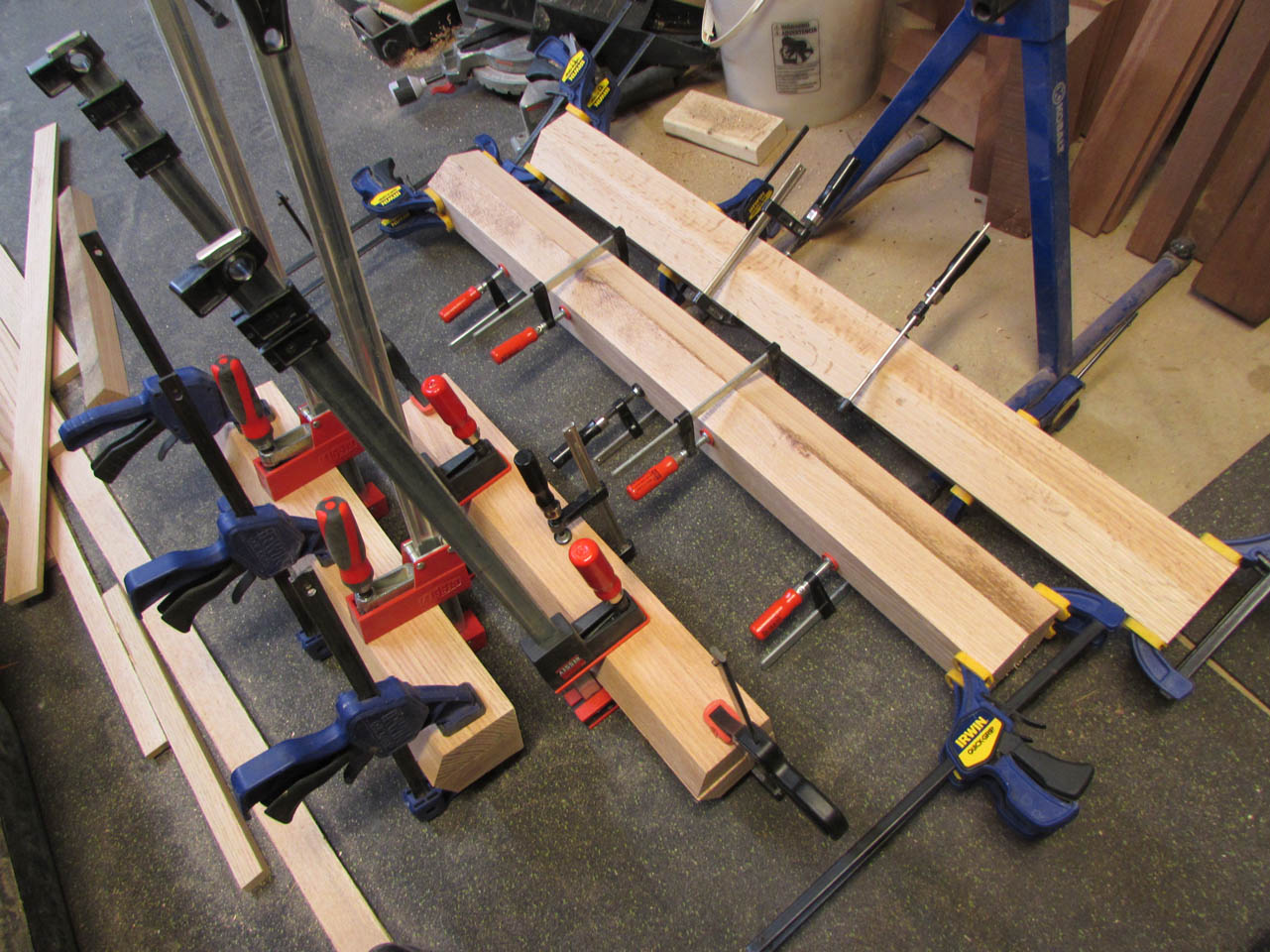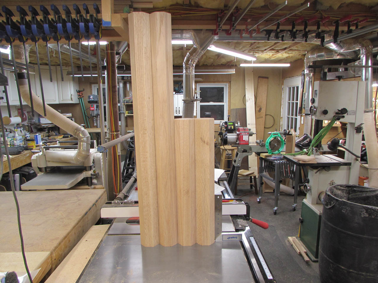 I pulled some 8/4 stock and cut it down to the rough sizes I needed for the 24″ long front legs and the 42″ long rear legs.