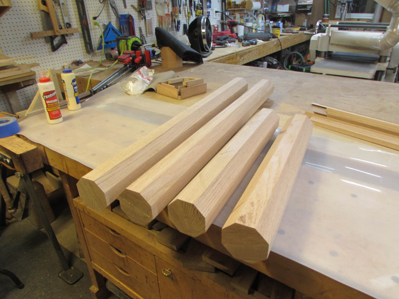The next piece that I am working on for the Saint Kilian chapel is the Pastor chair. It will have similar octagonal columns to the ambo. This is my design: chair-PARTS.pdf. I am sure there will be a few tweaks along the way, but it is a start.