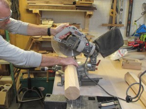 I made each of the columns about 1/4″ over-sized so that I could cut the ends off square when they were finished. I used my portable miter saw for this because it doesn’t slide, like my large miter saw. The large one has trouble staying perfectly 90° in both orientations. The small one stays locked in, so it is just easier to use that one.