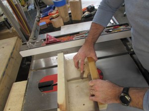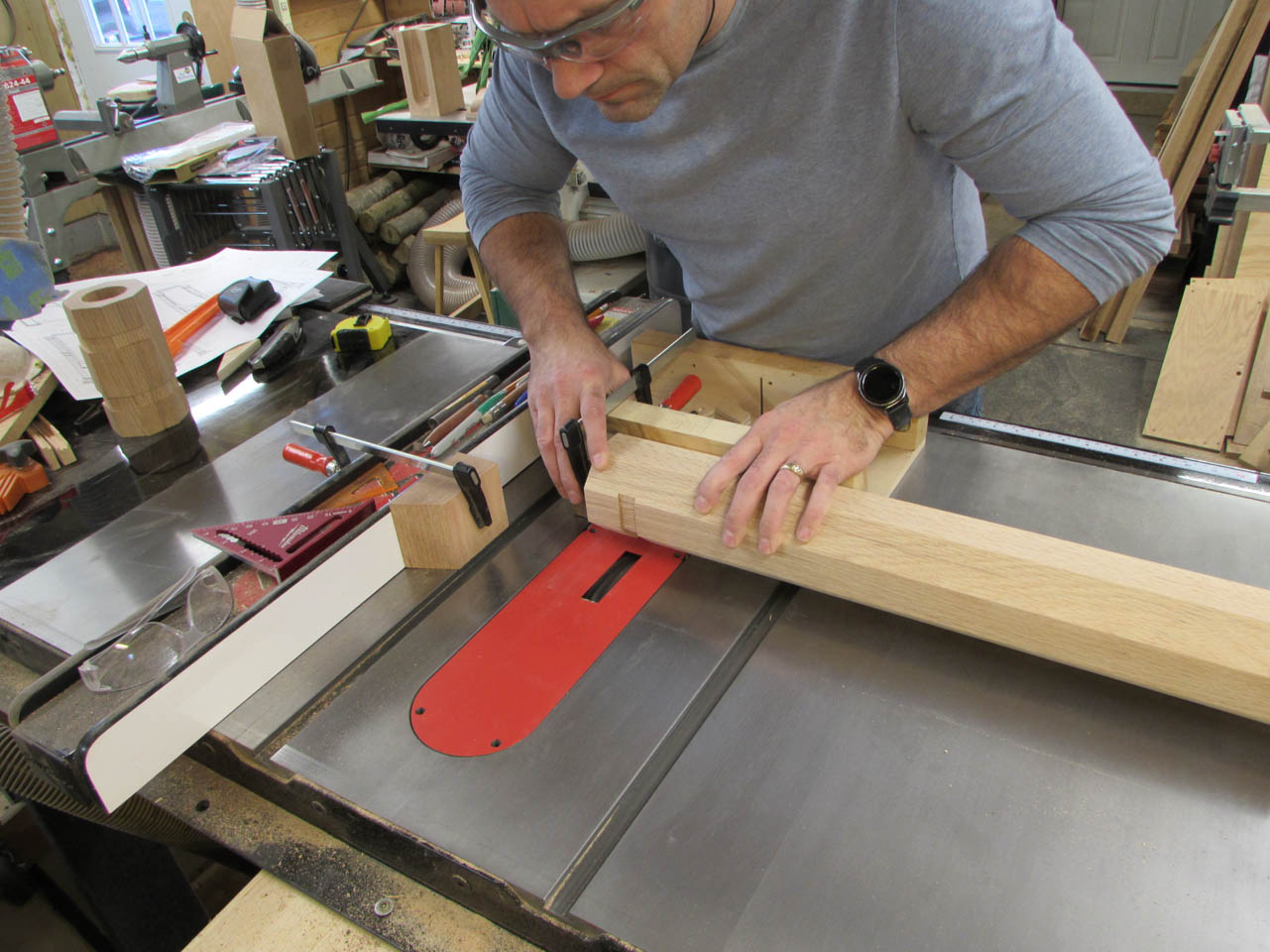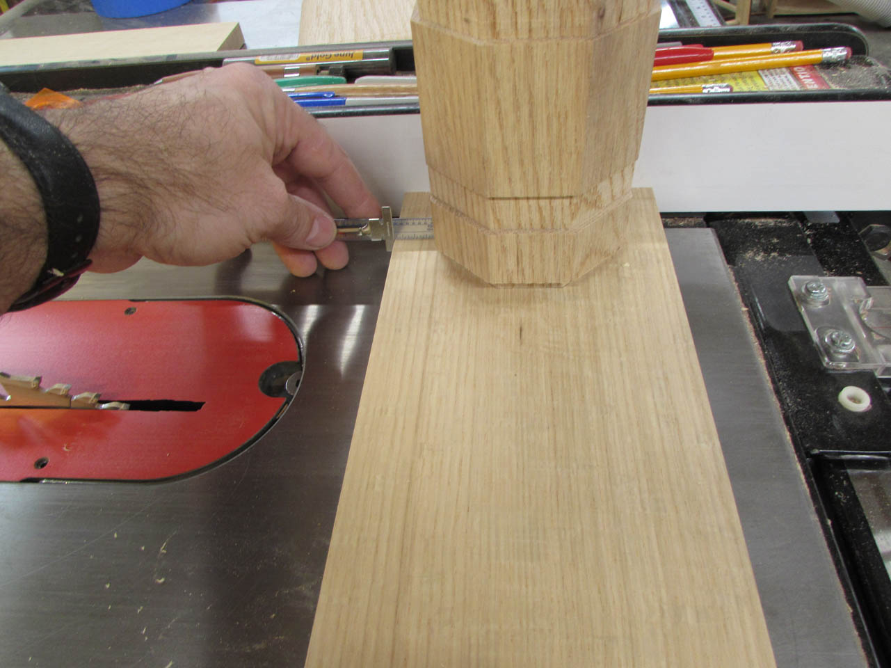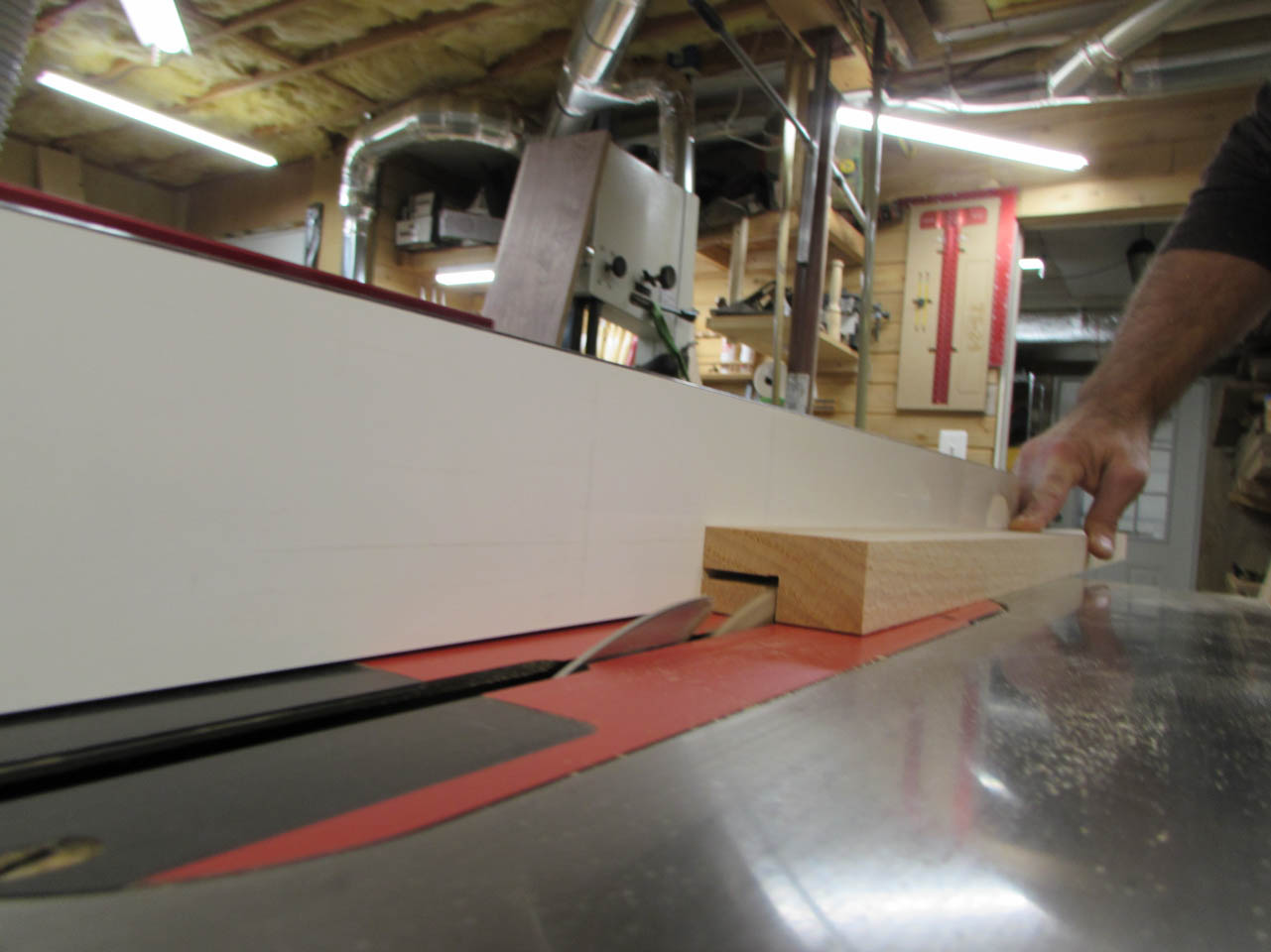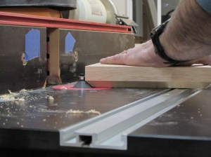 Then I adjusted the fence and cut a 1/4″ deep dado on three facets to establish the pocket for the arm of the chair to attach to.