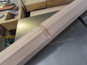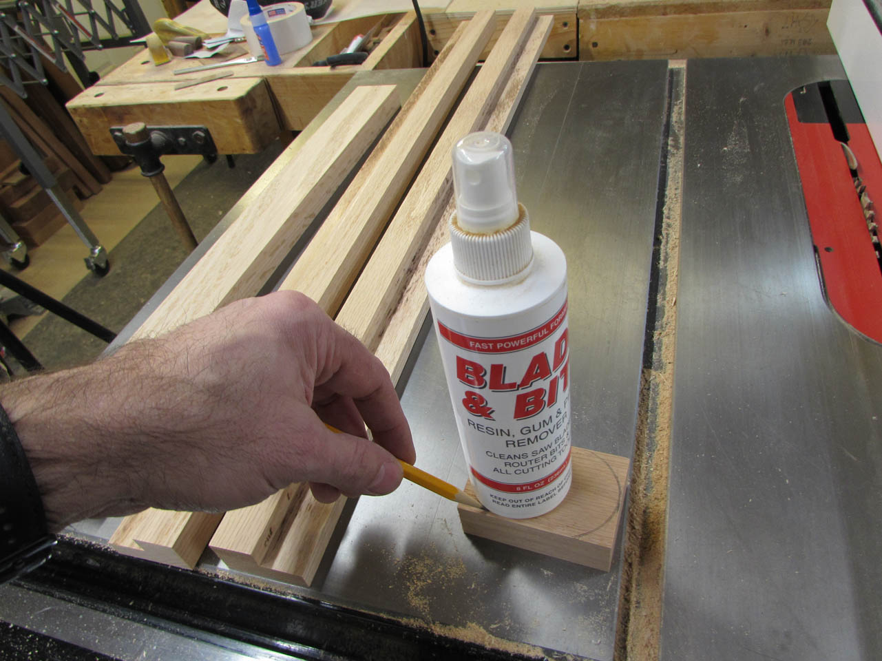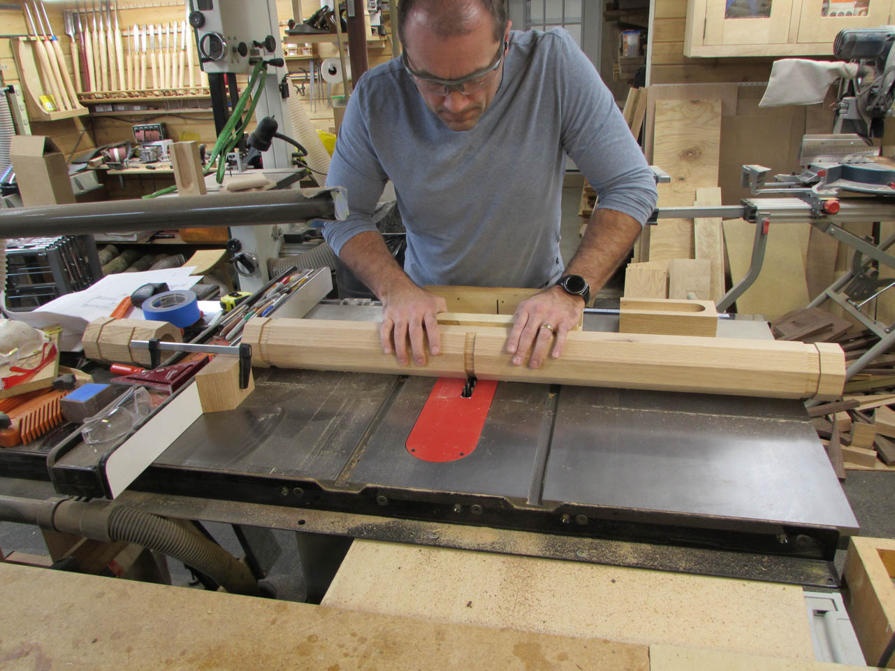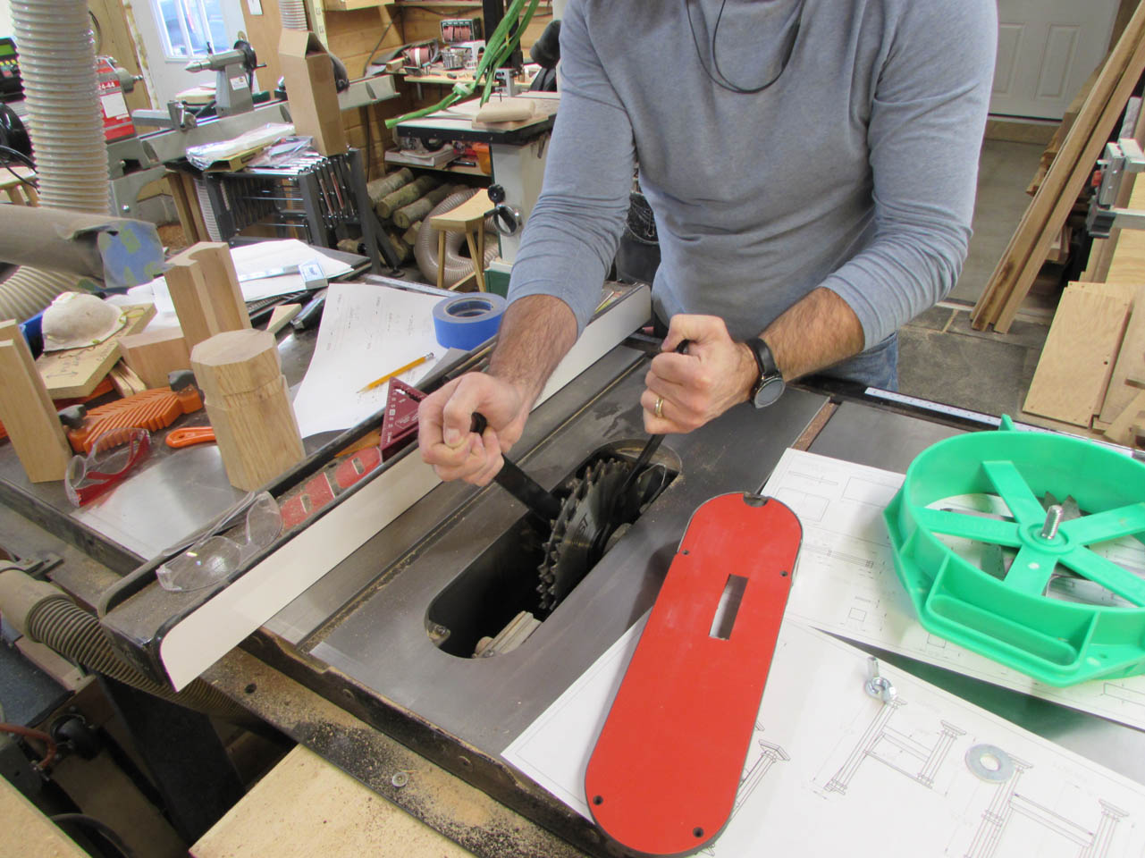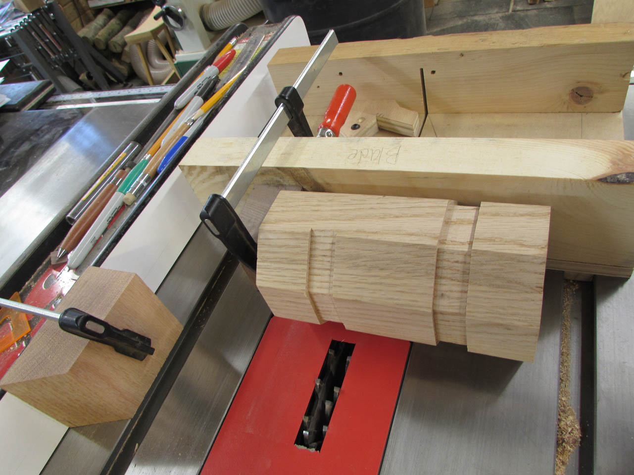 Then I adjusted the fence and cut a 1/4″ deep dado on three facets to establish the pocket for the arm of the chair to attach to.