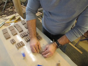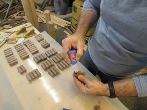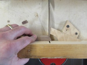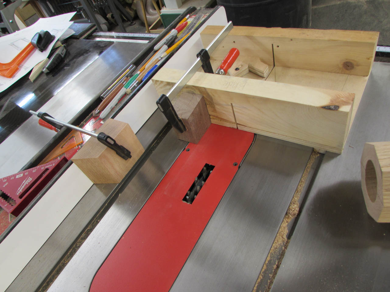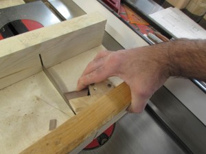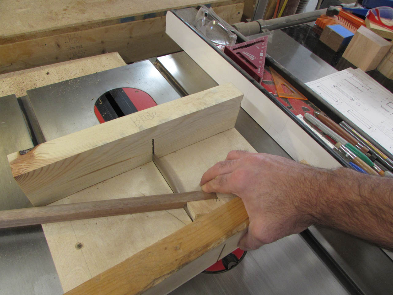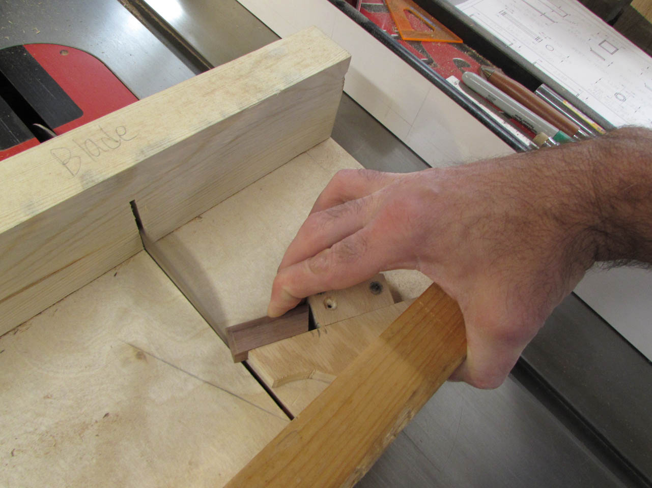 My stop blocks, added to my cross-cut sled make it easy to cut the walnut to length and add the angles.