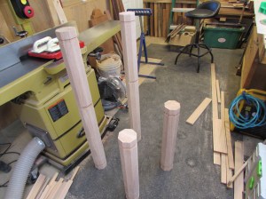 I jointed and planed them down to the correct height and width, leaving the length a few inches longer. Those will be cut down later.