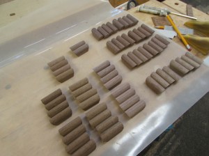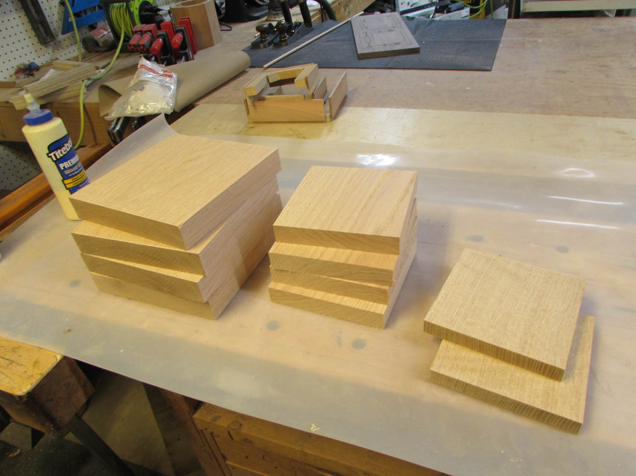The arms are done for now, so I moved on to cutting out the squares for the tops and bottoms of the columns.