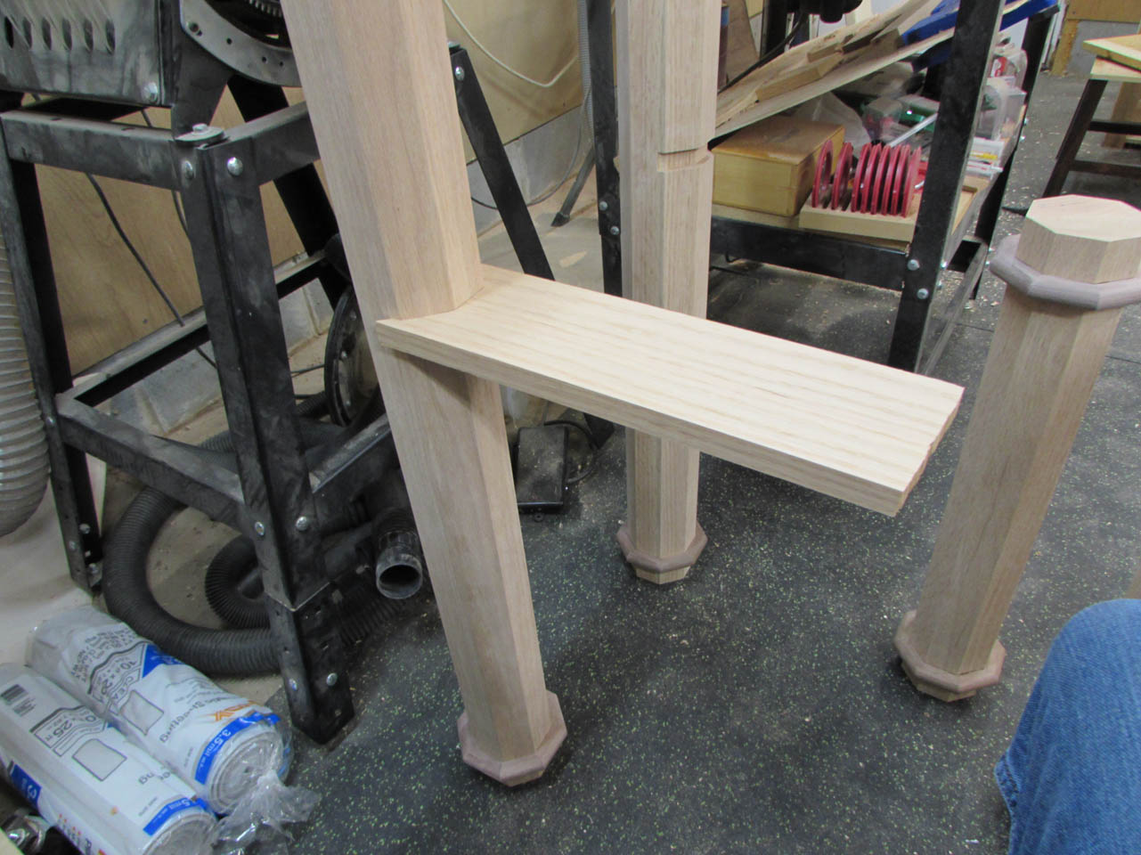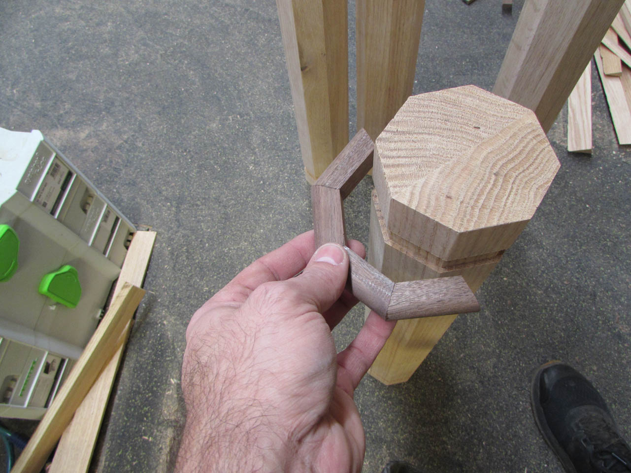 Like the Ambo, the columns on the chair will have a walnut bullnose wrapped around the top and bottom of the columns.