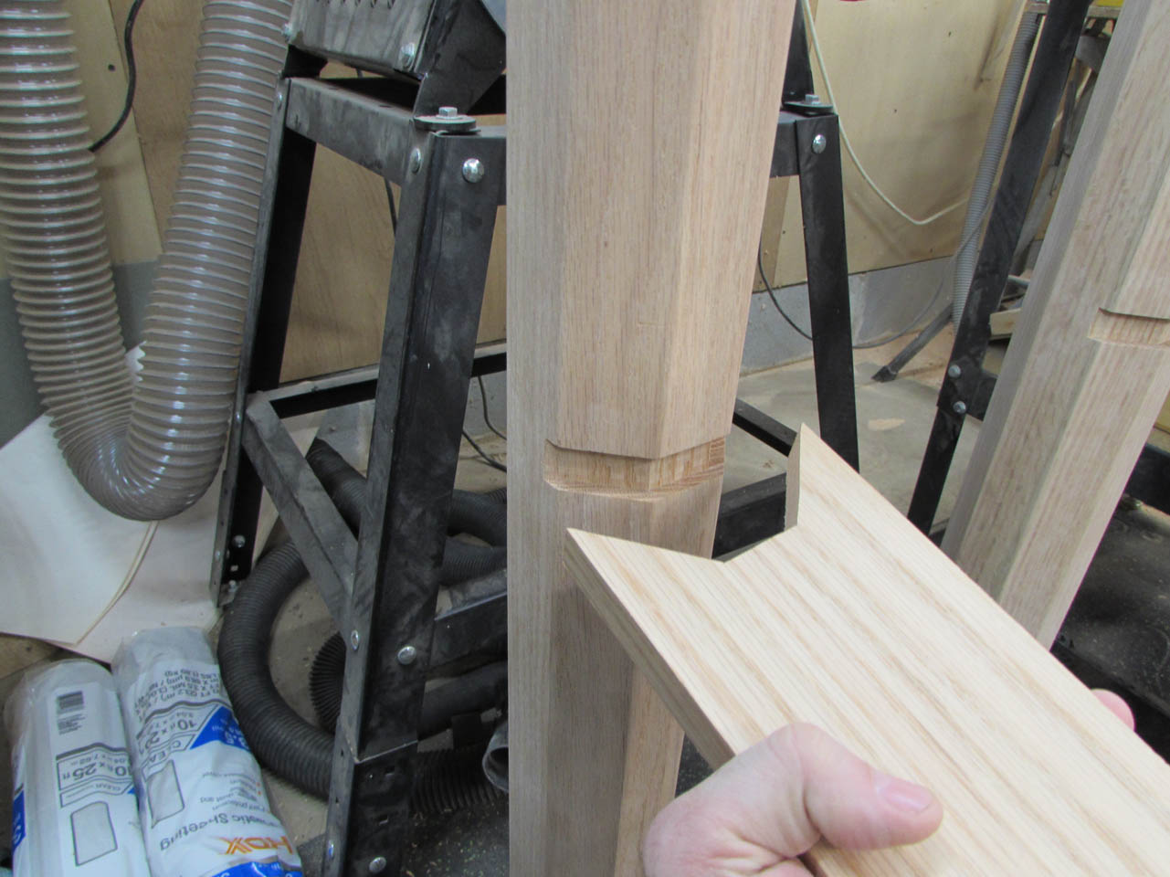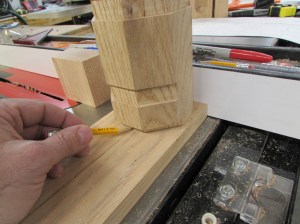 Then I set up some stop blocks on my fence and cross-cut sled. I used my short prototype column to verify my setup and set the depth of the blade.
