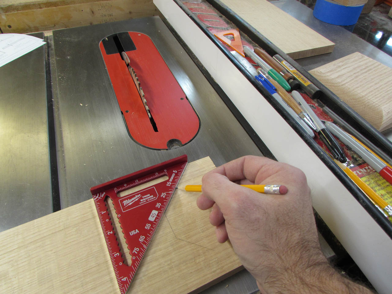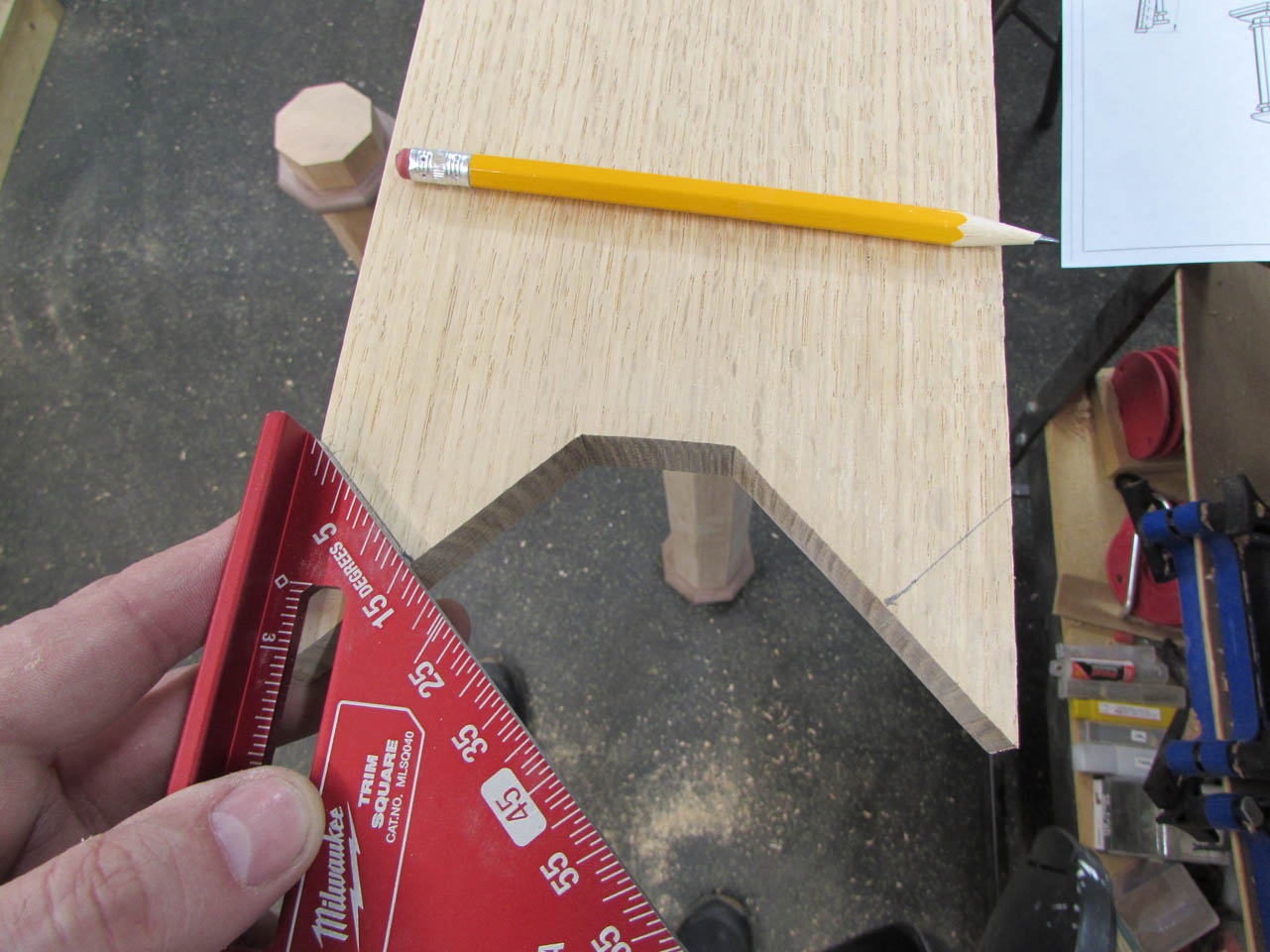 I used my speed square to extend the lines to the edge and verify that they were at 45° angles to the edge.