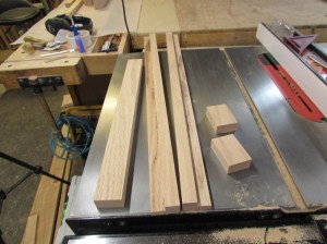 Since that worked successfully, I pulled out a big board and cut it down to pieces a little longer than I needed for the arms.
