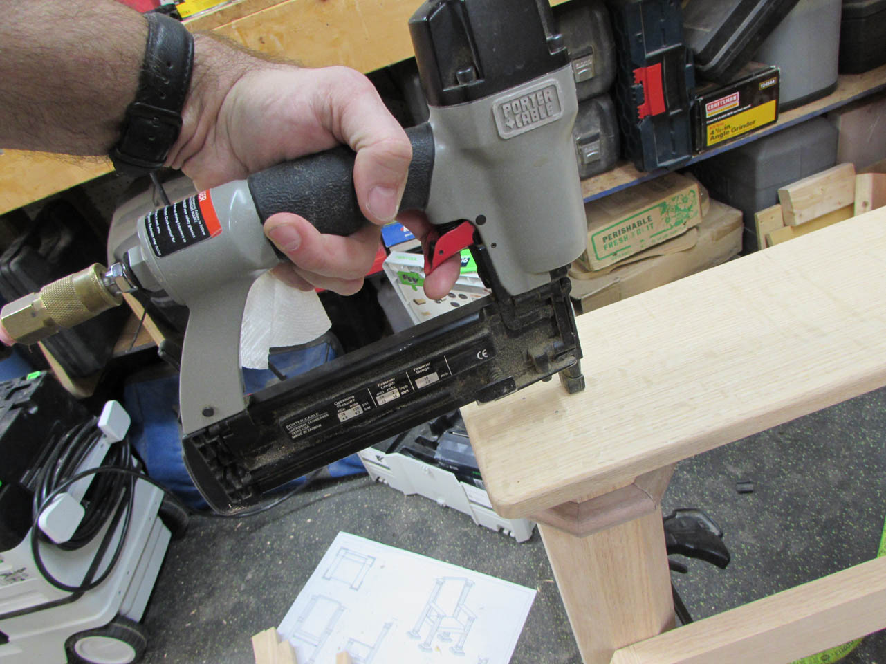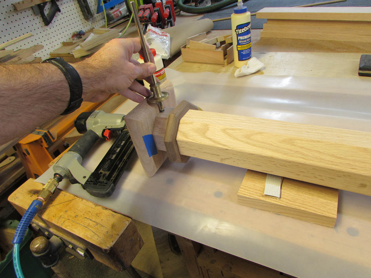 Then I applied a bit of wood glue and tacked the cap in place with an 18 gauge brad nailer.