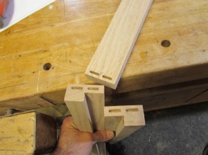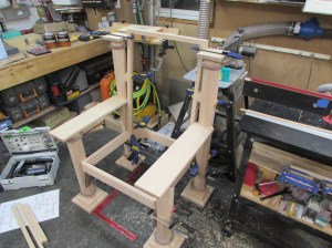 While they were curing, I began to assemble the bottom of the seat. An end-grain glue-up will not be strong enough to hold the frame together so I am going to use two loose tenons in each connection.