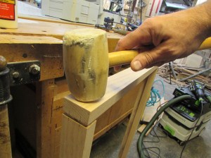 Then I blended that curve around the back angle, with my sander, to transition from the 1/4″ radius to a sharp corner, where it meets the column.