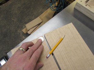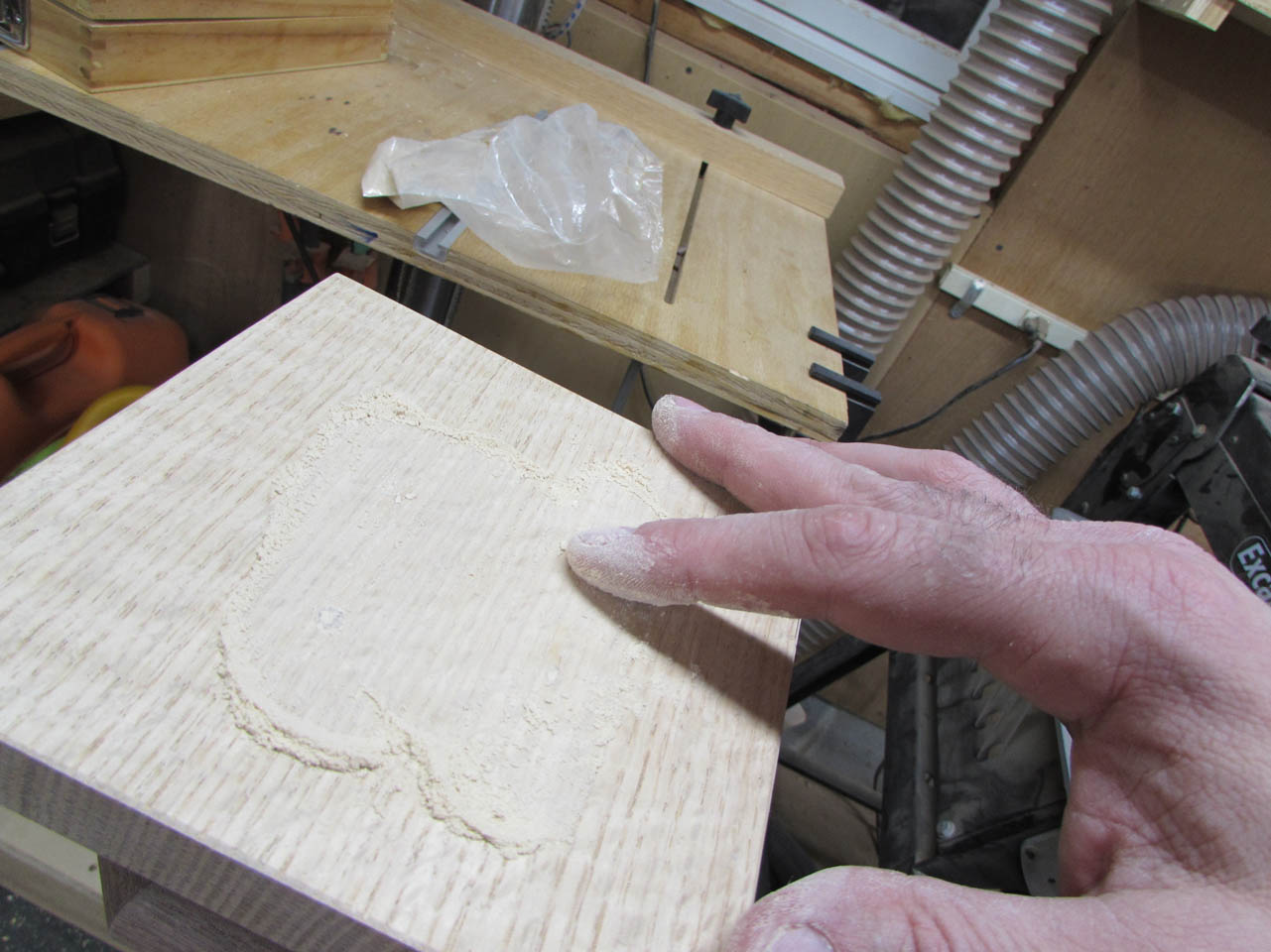 I used a coin to mark the small curve at the front corners and sanded down to my mark on the spindle sander.