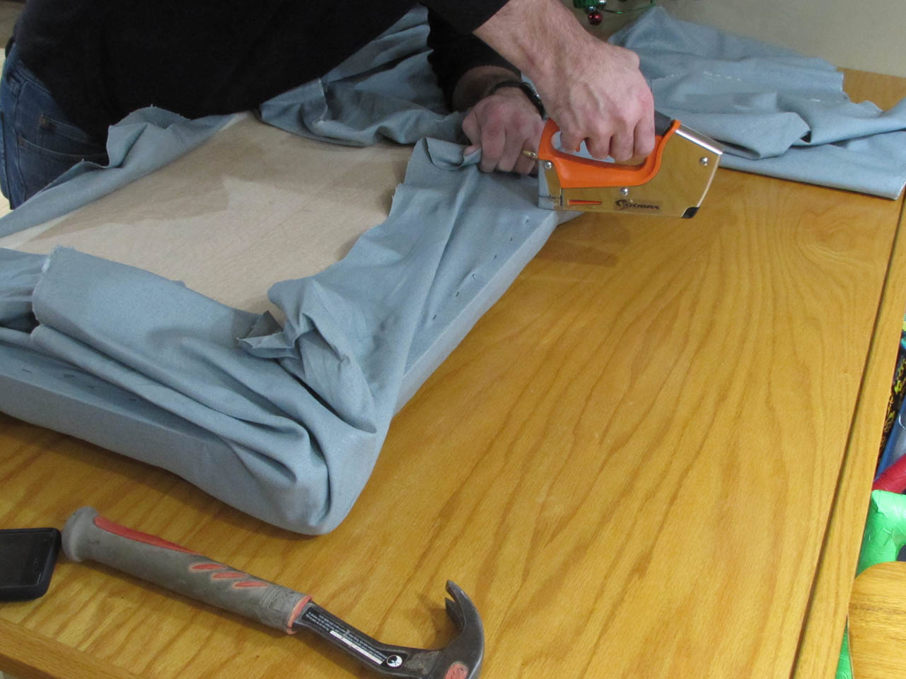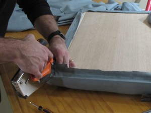 The last thing was to pull the original four staples and replace them, this released a bit of tension in the fabric allowing it to even out along the edges.