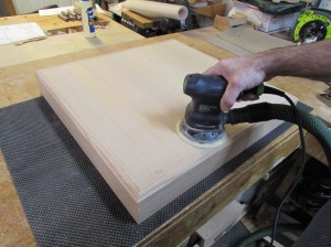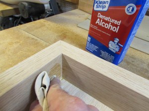 I couldn’t easily sand away the numbers I wrote on the boards to match the end. So, I used some denatured alcohol to clean away the pencil marks instead.