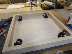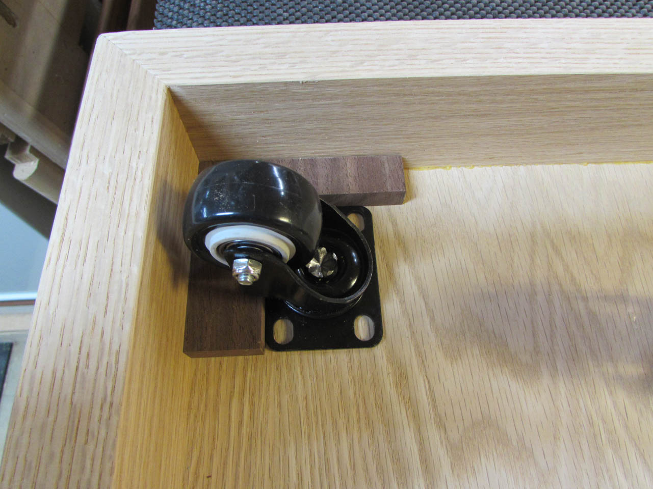 Next, I cut a spacer to hold all of the casters the same distance from the corners. I got the casters as close to the corner as I could, making sure they could still spin freely.