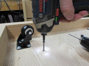 I used a 1/2″ long #12 pan head screw with a washer to attach the casters, making sure to gently hand-tighten all of the screws to prevent them from stripping out.