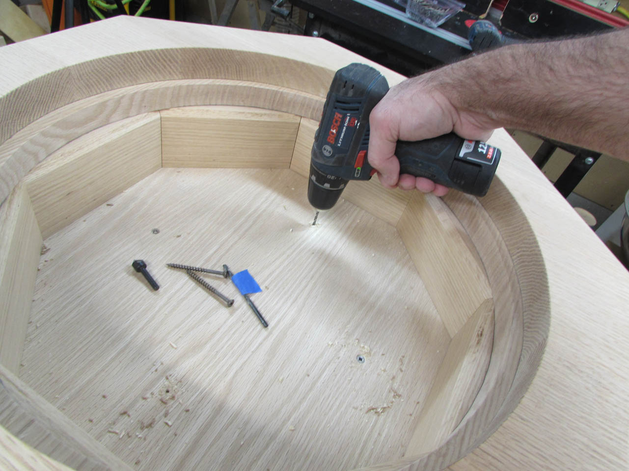 I used a counter-sink bit to make a taper at the top to receive the bugle head of the screws.
