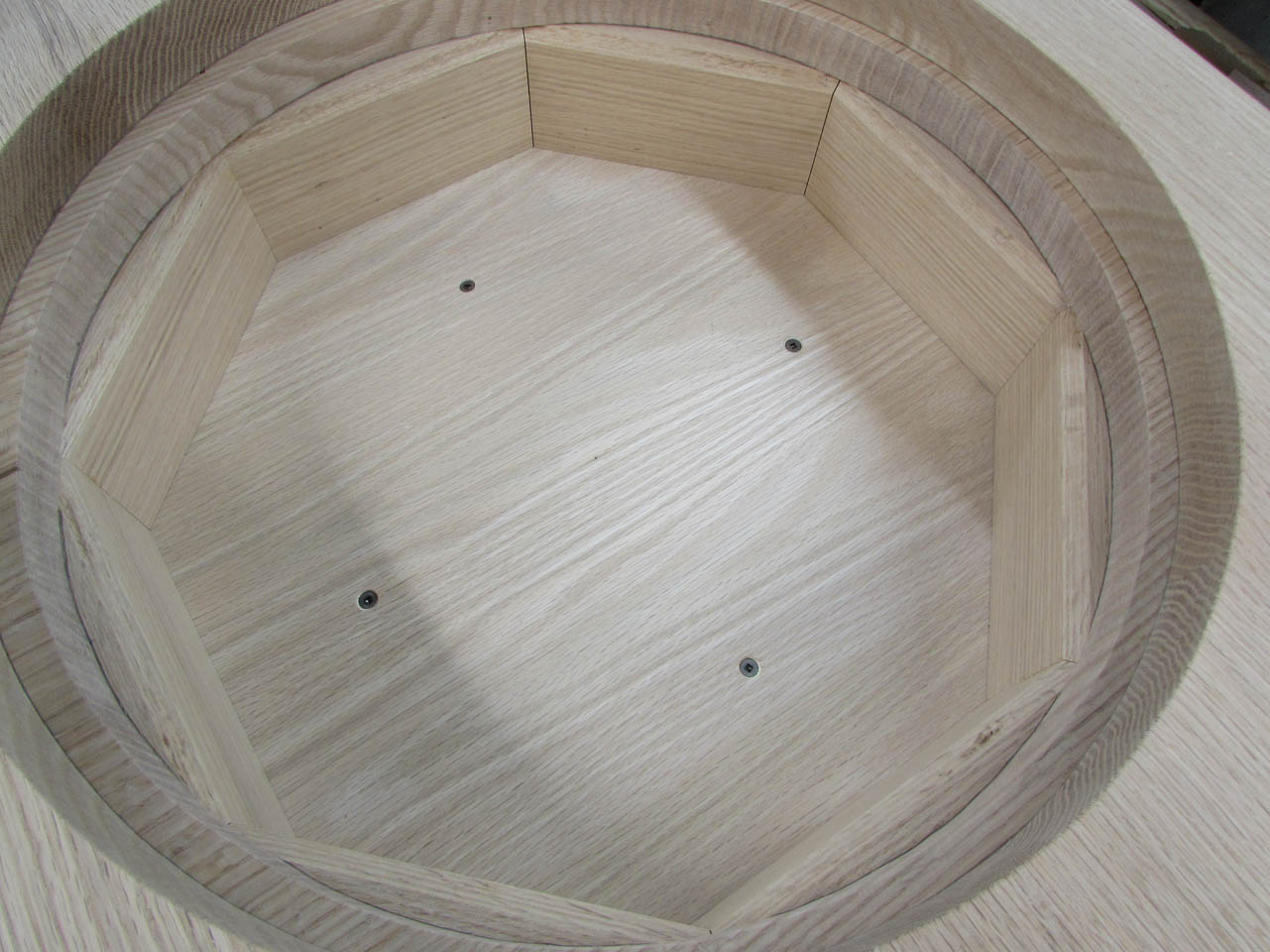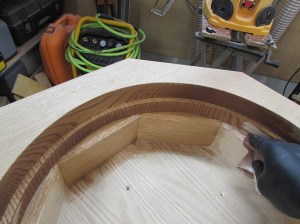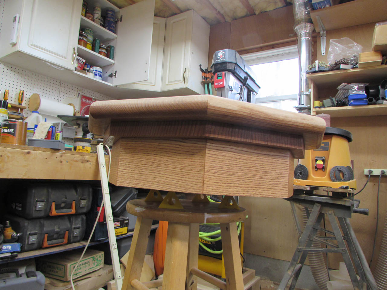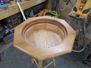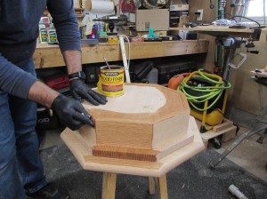 After the bottom was stained, I flipped the top over onto painter’s pyramids and stained inside the bowl.