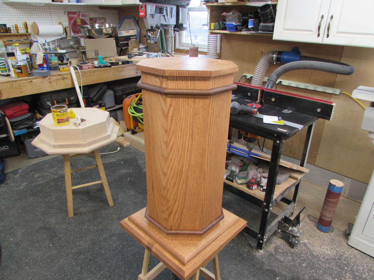 And here it is fully assembled. The casters move really well, and with most of the weight centered near the bottom of the column, the font is very stable and does not want to tip over. The final weight is 93 pounds. Only 25 pounds of that is the top section.