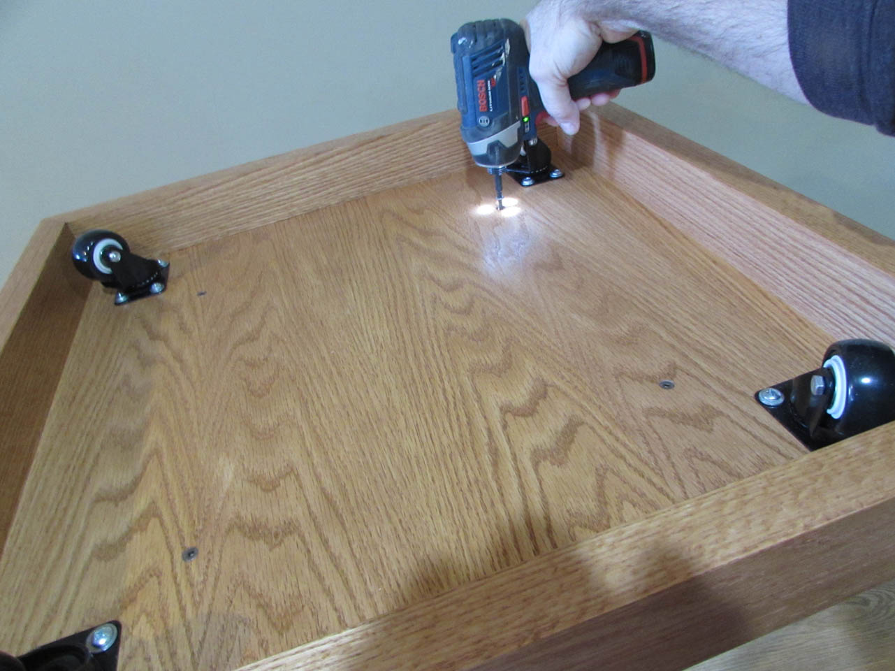 Once the wheels are done, I reattach the mobile base to the bottom of the column.