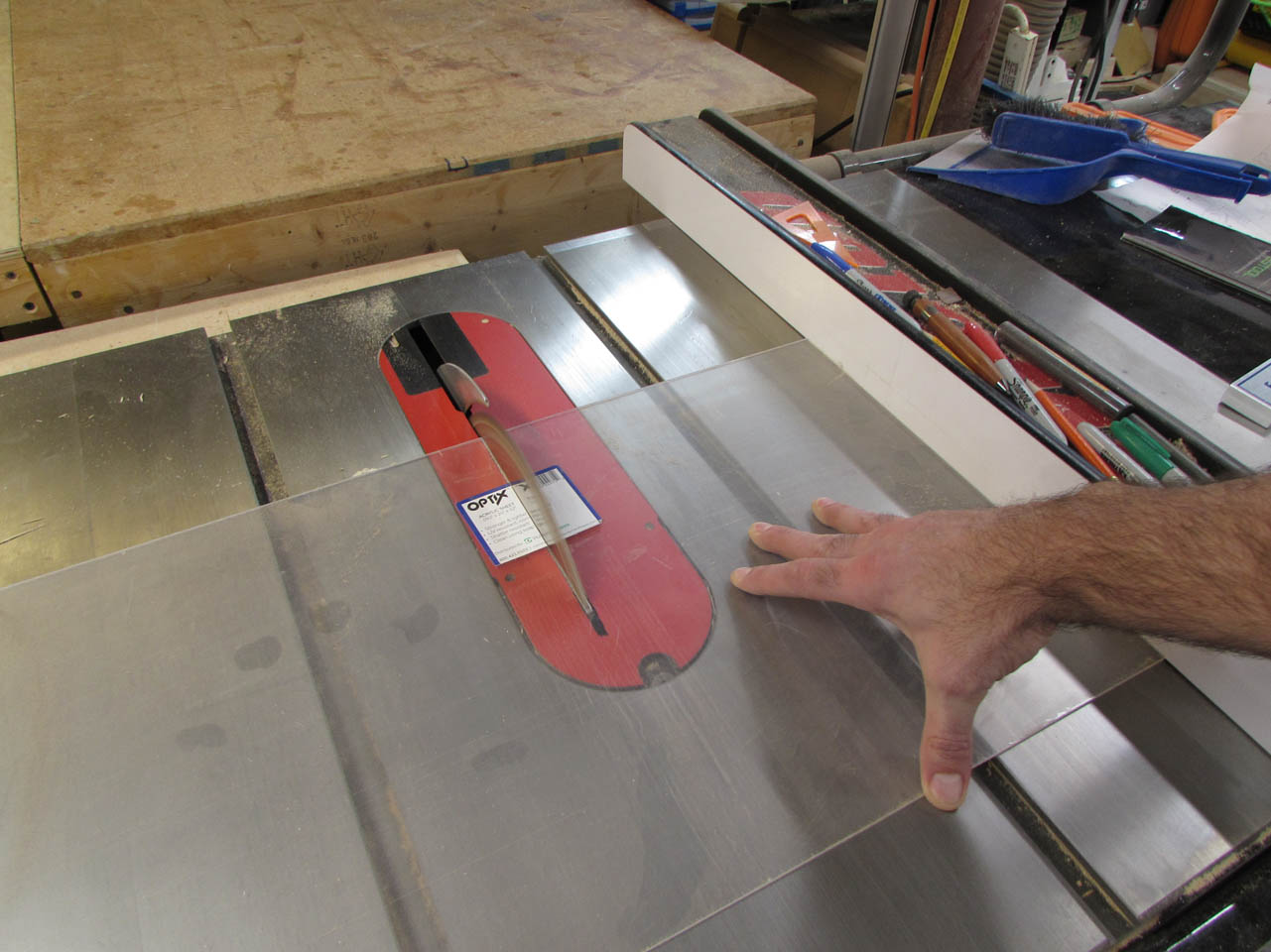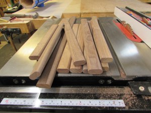 Then I went back to the table saw and set the fence to 3/4″ off the blade and cut each strip in half.