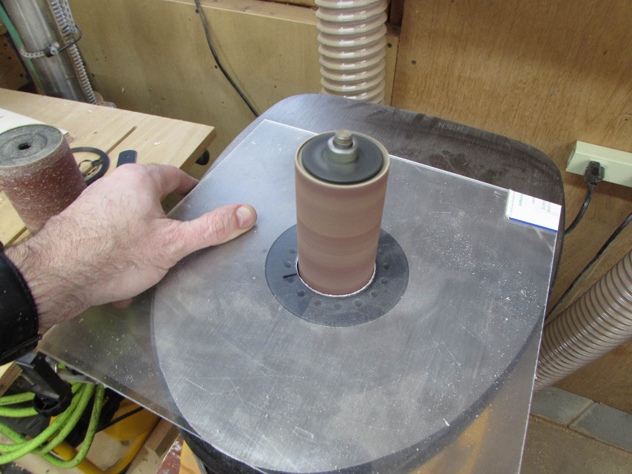 I put the 2″ spindle in my spindle sander and opened up the hole slightly. This gives a much better fit.
