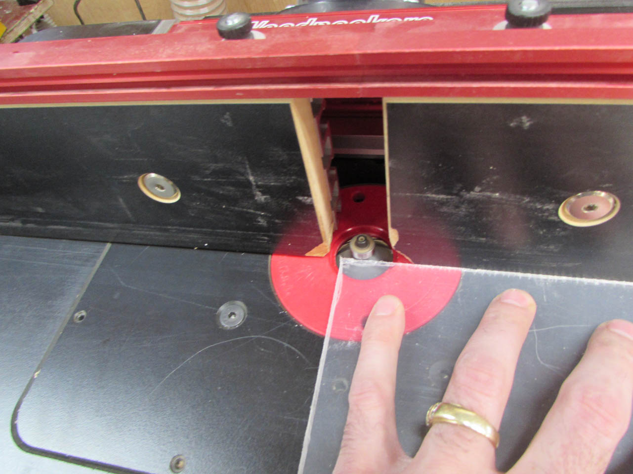 I have a poly set-up block that helps me set the bits to the correct depth and to help me make sure I have the right orientation for my cuts.