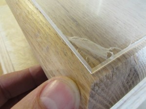 This seals up the gap and gives me some dust to hold stain and blend the gap into the rest of the wood.