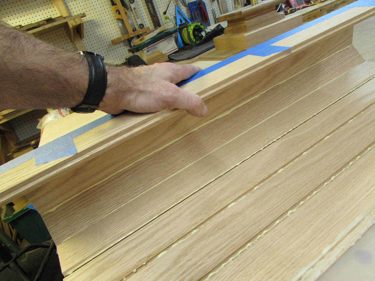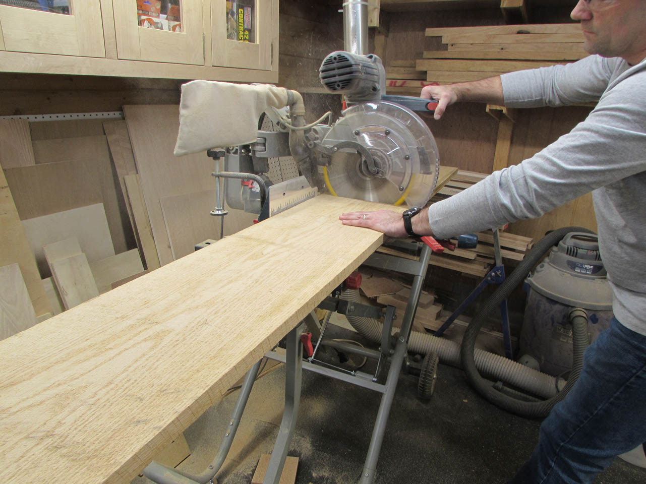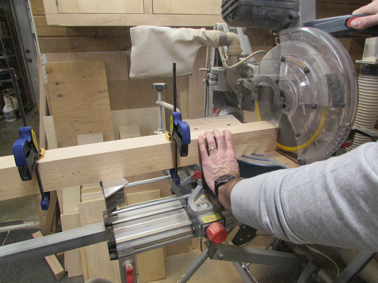 Next, I clamp them up and cut them to exactly 31″ long, removing any cracks or snipe.
