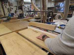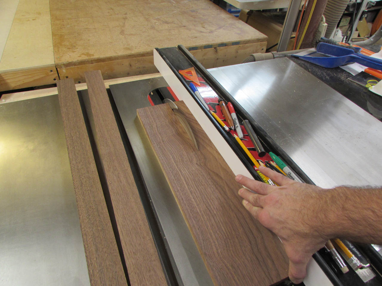I set my table saw fence to 2-3/4″ and cut eight strips being careful to stack them in the order I cut them so I can more easily match the grain later.