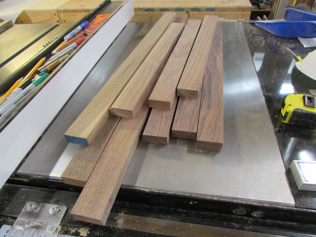 I grabbed all of my scrap walnut over 3/4″ thick and planed it down to just under 3/4″ (.730″).