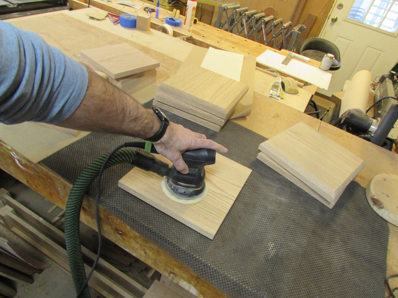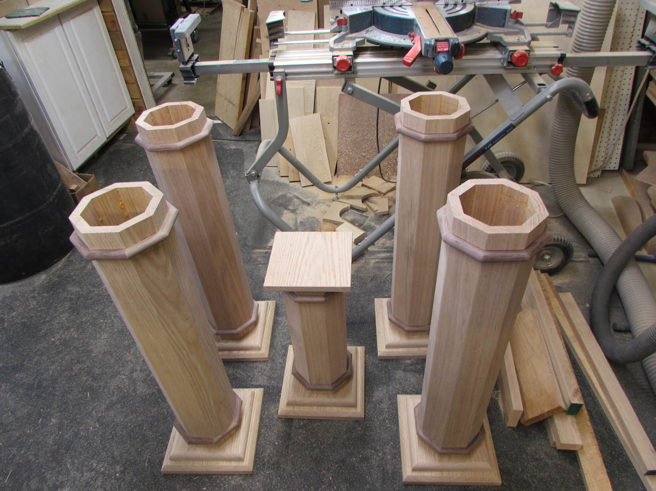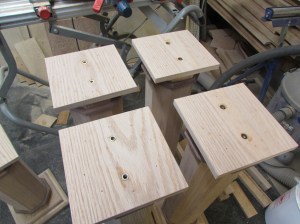 Before assembling the bases to the columns, I take some time to sand them all. It is a lot easier to sand a flat square then to try sanding the columns when they are all assembled…