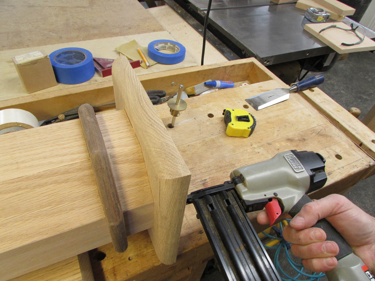 Once located, I used my brad nailer to attach the plate.