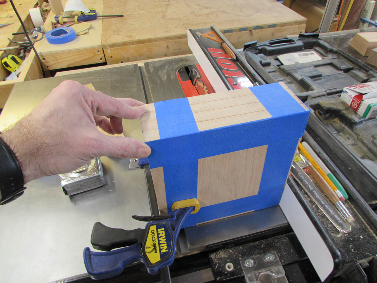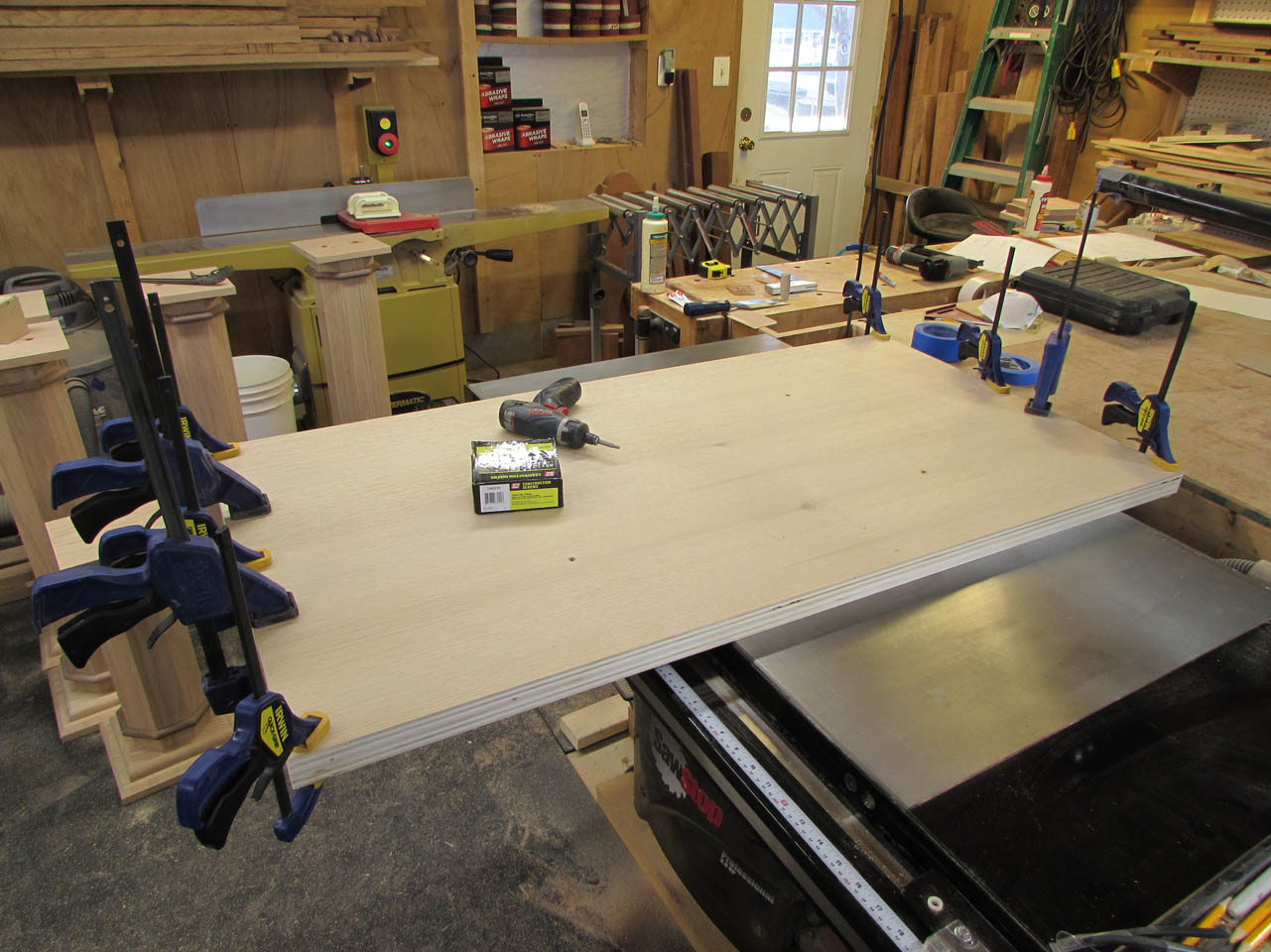 I laid the first top piece on the flattest surface in my shop, my table saw.