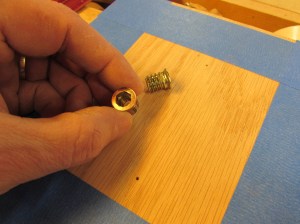 I drilled two 7/16″ holes that the threaded inserts will be mounted in.