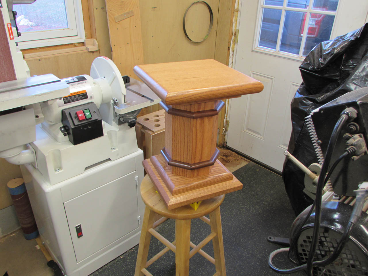 The next piece I stained was the really short column. I put it on a stool and tucked it out of the way.
