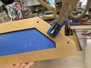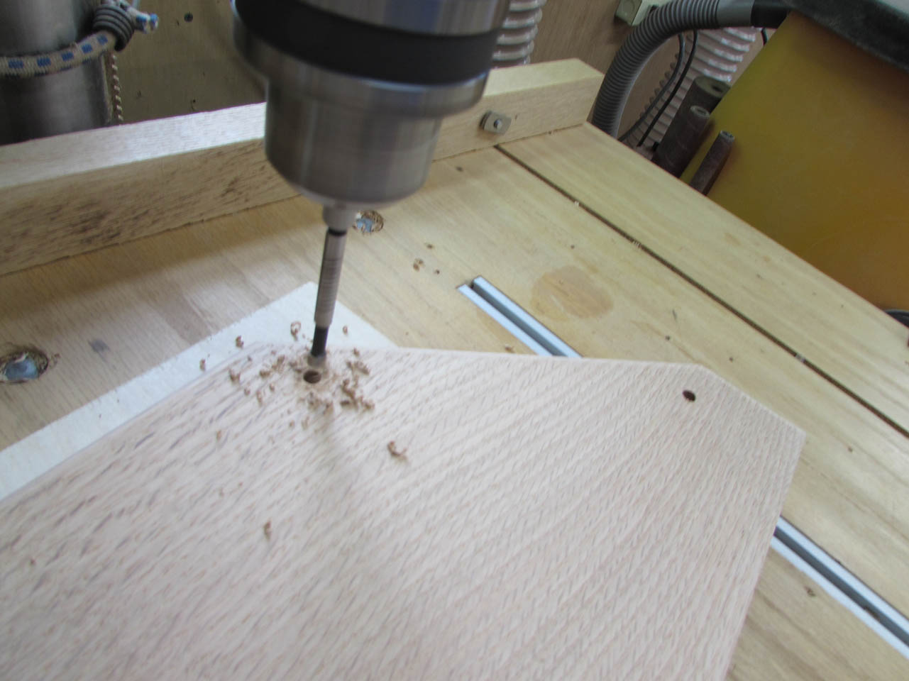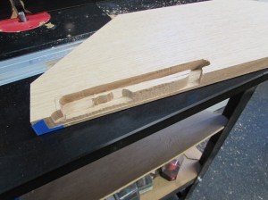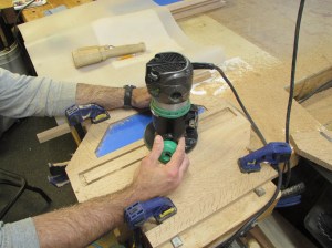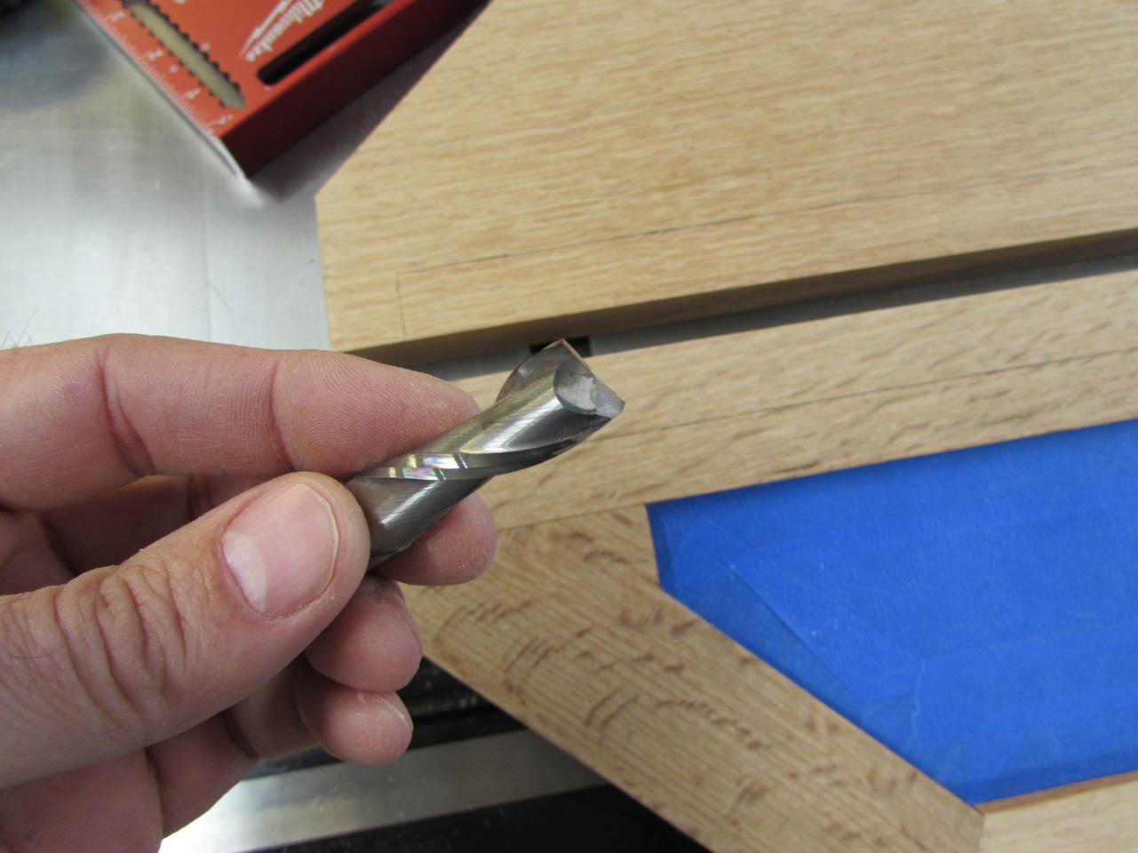 This method was unsuccessful. The large bit kept wanting to grab my board and throw it. Also, for some reason the bit loosened up and started to rise. Well, this piece is no good, I will have to make a new one.