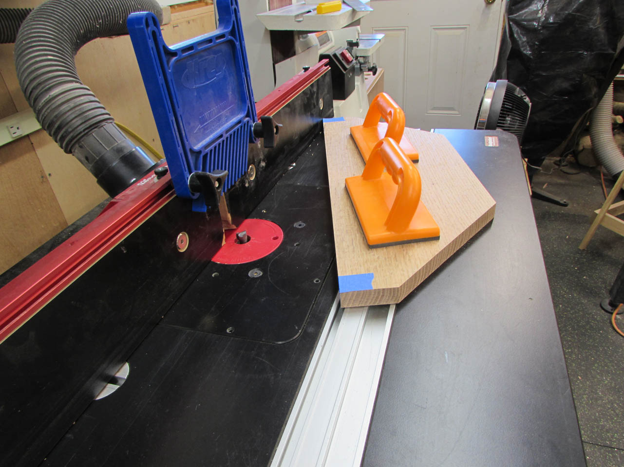 I decided to use my router table and a 1/2″ spiral bit to get a nice even cut. Normally I free-hand this sort of cut with a router, but I thought I would give this method a try.